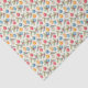 Coloful Christmas tree ornaments, evergreen sprigs, and holly leaves combine to make a beautiful and festive tissue paper.