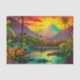 Vibrant, beautiful and colorful tropical island scene with palm trees, tropical plants, with Hawaiian style island paradise theme.