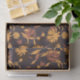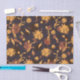 Fleurs, bourgeons et silhouettes feuilles jaune et orange foncé sur arrière - plan bleu-gris foncé, parfaits pour la décoration d'automne et de Thanksgiving.