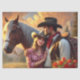 Papier Mousseline Cowboy Cowgirl and a Horse Western