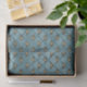 Un motif répétitif de crabes sur un arrière - plan damassé bleu en détresse.