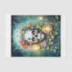 Papier Mousseline Crâne dans les fleurs et les toiles d'araignée