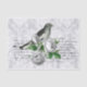 Un joli collage d'un oiseau, de roses blanches et de texte sur un fond de damas gris.