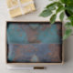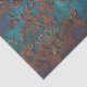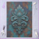 An ornate, weathered design featuring a stylized floral or fleur-de-lis shape in teal and turquoise tones, highlighted with copper and rust textures—evoking antique charm and rich decorative detail.