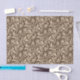Papier de soie de soie dans un motif de damassé de William Morris de cru des fleurs et du feuille de chardon, dans le beige léger, sur un taupe bronzage/arrière - plan en pierre, numériquement augmenté et coloré