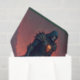 A dark knight — a mysterious fantasy warrior from the burning lands, surrounded by lava and a hellfire landscape. This armored fighter is a true skull warrior, reigning over an epic fantasy and fantasy realm. Full of evil and power, he roams a land filled with fire and volcanic mountains.