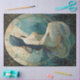 Peinture d'art exotique et serein déco avec une sirène à pleine lune, dans le style de l'art décoratif, portrait illusoire, paysage marin.