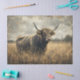 Ce papier de tissu de découpage capture une vache rustique des hautes terres debout dans un champ ouvert sous un ciel couvert dramatique. Le décor évoque la force sereine des paysages ruraux, parfaits pour le mobilier de style ferme, la décoration do-it-yourself et les projets artisanaux d'inspiration nature.