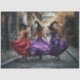 La scène est vivante avec énergie comme un groupe de sorcières colorées tourbillonnant et danser sur une vieille rue pavée sous le ciel illuminé par la lune. Leurs tenues violettes fluides brillent dans la lumière tamisée, ornées de broderies complexes et de symboles magiques. Leurs grands casquettes pointus, inclinés à des angles ludiques, ajoutent à leur charme mystique. Chaque mouvement envoie ses jupes tourbillonnantes, révélant des couches de violet profond et de prune riche, accentuées par des éclats d'or et d'argent. L'atmosphère est pleine de joie et d'enchantement, leur rire résonne toute la nuit, accompagné du scintillement des lanternes et de la douce lueur des lucioles éparpillées. La scène est à la fois fantaisiste et puissante, comme un conte oublié qui se déroule au coeur d'un village mystique. Sorcières colorées dansant au crépuscule, célébration mystique sur rue pavée, tenues violettes coulantes avec enchantement, grands casquettes aux motifs magiques, jupes tourbillonnantes révélant violet profond, lanternes festives brillant de mystère, lanceurs fantaisistes à minuit, sorcellerie vibrante sous ciel clair, enchanter sorcières avec mouvements gracieux, nuit captivante d'énergie magique.
