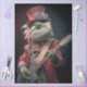 steampunk chameleon artwork, whimsical reptile decoupage panel, electric guitar animal design, RHDesigns mixed media paper, fantasy rocker collage, red top hat chameleon, iridescent goggles reptile art, textured steampunk coat, handcrafted furniture panel, bold seasonal paper, layered whimsical imagery, joyful fantasy collage, holiday tray design, playful lizard decor paper, RHDesigns by 2ChattyChicks, vibrant DIY animal project, musical reptile crafting paper, anthropomorphic chameleon rocker.