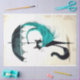 Pluie Whimsique Cette charmante illustration présente un chat noir tenant un parapluie, orné de bords décoratifs. Le chat, portant une écharpe turquoise qui coule élégamment dans l'air, ajoute une touche de fantaisie à la scène. L'arrière - plan clair et simple contraste magnifiquement avec les tons sombres du chat et de son parapluie, créant un effet visuel saisissant. "Whimsical Rain" capture l'essence ludique et surréaliste d'un animal domestique bien-aimé, anthropomorphisé de manière élégante et artistique.