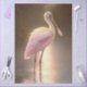 Poêle à bec rosé debout dans l'eau avec une lumière chaude brillant sur l'oiseau rose.