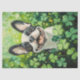 Apportez charme et fantaisie à votre artisanat avec ce délicieux papier de tissu de découpage avec un Boston Terrier assis heureux dans un champ luxuriant de trèfle. Les verts vibrants et les détails expressifs en font un endroit parfait pour ajouter une touche ludique et d'inspiration nature à do-it-yourself projets et décors maison.