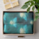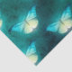 Des papillons verts, turquoises et crème brillants sont posés sur un arrière - plan turquoise/vert profond. Parfait pour l'artisanat du papier, l'art de la découpage ou l'emballage de cadeaux. Assurez-vous de retirer le sac cadeau correspondant!