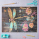 L'image est une peinture vibrante et colorée avec une grande libellule aux ailes bleues et jaunes vives, dressée contre un arrière - plan texturé foncé. La libellule est représentée au centre de l'image, avec ses ailes larges. Autour de la libellule se trouvent différentes fleurs dans les tons rose, orange et bleu, ajoutant à la nature vivante et capricieuse de l'oeuvre. Le contraste entre les couleurs vives de la libellule et des fleurs et l'arrière - plan sombre rend l'image visuellement frappante et intéressante. Peinture de libellules vibrante, ailes bleu et jaune vif, arrière - plan texturé foncé, fleurs bleues rose orangé, oeuvre d'art lunaire vivante, contraste saisissant visuellement, art nature coloré, peinture de libellules et de fleurs, composition artistique, design accrocheur.