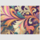L'image montre un motif abstrait complexe et coloré, aux formes tourbillonnantes et feuillues. Le design présente une palette vibrante de couleurs, dont des tons orange, rose, turquoise et crème, placés contre un arrière - plan sombre. Le motif est très détaillé, chaque élément se déplaçant sans heurts dans le suivant, créant un sentiment de mouvement et de dynamisme. Ce type de design est intéressant et pertinent pour sa valeur artistique et pourrait être utilisé dans diverses applications telles que papier peint, estampes en tissu, ou art numérique. s, couleur vibrante motif abstrait complexe, design coloré, palette en forme de feuilles pivotantes, crème turquoise rose orange, arrière - plan foncé, motif très détaillé, sens du mouvement, valeur artistique, design de papier peint, impressions en tissu, art numérique.