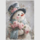 Papier Mousseline Decoupage Snowman with Pink Roses