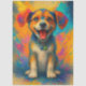 colorful puppy decoupage tissue paper, joyful dog splash background design, orange blue white fur artwork, playful pet-themed craft sheet, premium wrinkle-free tissue paper, vibrant beagle pup, cheerful mixed-media dog design, expressive puppy furniture art, perfect for pet gift projects, bright happy dog tissue.