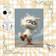 This playful design features a fluffy white cat mid-prance, striking a one-legged pose in oversized orange cowboy boots. With expressive eyes, a bushy tail, and a cheeky stance, this feline brings full personality to the paved path surrounded by tall grass and a cloudy sky. The exaggerated proportions and animated posture add humor and charm, making this piece perfect for whimsical crafting and fantasy-themed décor.