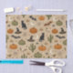 A warm, Southwestern-inspired Halloween repeating pattern that blends classic spooky motifs with desert charm. Earthy pumpkins in muted orange and sage green are scattered among black cats, crescent moons, bats, witches’ hats, spiders, spiderwebs, and tiny stars, alongside cacti, desert plants, and subtle skull accents. Set against a sandy, sun-washed background with a soft grainy texture, the design feels rustic, cozy, and atmospheric rather than scary. The palette of warm sand, clay orange, olive green, charcoal, and soft cream gives the pattern a calm, autumnal desert-night mood.