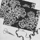 Le design présente des fleurs de mandala abstraites dessinées à la main et du cachemire en blanc sur un arrière - plan noir.