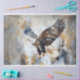 L'image est un tableau d'un aigle chauve en vol. L'aigle est représenté avec ses ailes larges, présentant des plumes détaillées dans les tons marron, blanc et noir. L'arrière - plan est un abstrait mélange de couleurs muettes, gris, beige et blanc, qui contraste avec la représentation vivante de l'aigle. Cette image est intéressante en raison de la représentation dynamique de l'aigle, capturant un sens du mouvement et de la liberté, et le mélange artistique d'éléments réalistes et abstraits. aigle chauve en vol, plumes détaillées, ailes écartées larges, abstrait, couleurs muettes, représentation dynamique, mouvement et liberté, mélange artistique, réaliste et abstrait, RHDesigns par 2chattychicks.