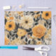 Un joli motif d'or et de fleurs jaunes et de feuilles décorent ce papier de tissu qui est idéal pour l'emballage cadeau ou pour des projets artisanaux et de découpage.