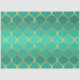 Elégante fausse parties scintillant or quatrefoil motif, bleu clair, bleu paon foncé, turquoise, vert aqua, vert, teintes velours effets de texture, étincelles, brillant, brillant, or nuances effets strokies, design, illustration, ornement, géométrique, formes, abstrait, graphique, culture, moderne, rétro, mod, boho, chic, girly, feminly ine, occasions spéciales, célébrations, festives, traditionnel, mode, doux, beau, art, élégant, artistique, créatif, décor, populaire, glamour, classe, image de style. Personnalisez-le avec votre nom mot ou phrase préféré, en cliquant sur le bouton personnaliser et ajouter du texte, choisissez la police et la couleur du texte. Impression d'image