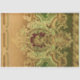 Design vintage richement coloré et détaillé, avec figuier rococo tourbillonnant et médaillon floral sur arrière - plan vert et or.