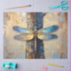 Une oeuvre raffinée avec une libellule dorée et bleue, alliant élégance métallique et beauté naturelle pour une touche de décoration sophistiquée.