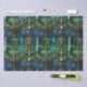 Élégant céleste émeraude vert arbre faux vitrail motif avec accents or avec arrière - plan bleu et vert