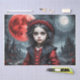 Ce design présente une jeune sorcière habillée de noir et de rouge, sur fond sombre et atmosphérique. La scène est éclairée par deux lunes distinctes, une rouge sang et une blanche pâle, qui jettent une lueur sinistre sur l'environnement. Le titre, "Enfant de la Double Lune", évoque un sentiment de mystique et d'enchantement, capturant l'essence d'un personnage né sous ces influences lunaires contrastées. Idéal pour Halloween ou tout projet avec un thème gothique et magique, ce design mêle les éléments de l'obscurité et la beauté d'un autre monde, parfait pour créer un art et un décor d'inspiration.
