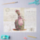 Belle éphémère collée de la Dame du 18ème siècle en robe rose contre un arrière - plan d'écriture française, la Tour Eiffel et une abeille (symbole de la France).