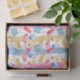 Aquarelle rayures pour célébrer vos vacances à la plage. Raspberry popsicle rose, sable jaune et bleu océanique rayures décorées de cocktails, boules de plage, popsicles, sacs de plage et pastèque.