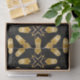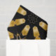 Elégante conception de papier tissulaire avec un motif sans couture de formes géométriques dans des teintes en faux or sur un arrière - plan noir.