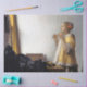 Johannes Vermeer (Octobre 1632 - Décembre 1675), dans l'original néerlandais Jan Vermeer van Delft, était un peintre de l'époque baroque hollandaise qui se spécialisait dans les scènes intérieures intérieures de la vie de classe moyenne. Au cours de sa vie, il a été un peintre de genre provincial modérément réussi, reconnu à Delft et à La Haye. Néanmoins, il a produit relativement peu de tableaux et n'était évidemment pas riche, laissant sa femme et ses enfants endettés à sa mort. Vermeer travaillait lentement et avec grand soin, et utilisait fréquemment des pigments très coûteux. Il est particulièrement réputé pour son traitement magistral et son utilisation de la lumière dans son travail. "Presque tous ses tableaux, écrivait Hans Koningsberger, sont apparemment placés dans deux petites pièces de sa maison de Delft ; ils présentent les mêmes meubles et décorations dans divers arrangements et ils représentent souvent les mêmes personnes, surtout des femmes." Sa modeste célébrité a cédé la place à l'obscurité après sa mort. Il a été à peine mentionné dans le principal livre source d'Arnold Houbraken sur la peinture hollandaise du 17ème siècle (Grand Théâtre des Peintres hollandais et des Artistes femmes) et a donc été omis des enquêtes ultérieures sur l'art hollandais pendant près de deux siècles. Au 19ème siècle, Vermeer fut redécouvert par Gustav Friedrich Waagen et Théophile Thoré-Bürger, qui publièrent un essai qui lui attribuait 66 photos, bien que seulement 34 peintures lui soient aujourd'hui attribuées par tous. Depuis lors, la réputation de Vermeer s'est développée et il est maintenant reconnu comme l'un des plus grands peintres de l'âge d'or hollandais. Citation : Wikipedia