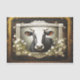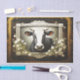 Rustic Country Farmhouse Vache primitif dans un cadre de fenêtre avec des fleurs Découpage Tissu papier Peinture primitif avec une vache, dans le style de l'art primitiviste, portrait illusoire, et ferme.