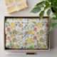 Un papier de tissu à thème naturel qui présente des choses que l'on trouve sur le plancher forestier comme les escargots, le feuillage, les champignons, les rochers et plus illustrés par l'aquarelle dans les tons dorés jaunes, bleus et terre. Très agréable pour les cadeaux d'automne !