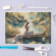Parfait pour le découpage ou l'utilisation comme emballage cadeau. Scène romantique d'un lac serein à la lumière du soleil applaudi, une fille assise tranquillement dans un bateau en bois, peut-être en attente de quelqu'un.