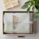 Le papier de tissu du moteur du train aquarelle le plus mignon, correspond aux sacs-cadeaux et aux invitations du même design.