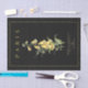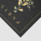 Papier de tissu découpage qui ressemble à une page de titre vintage en France avec une illustration de fleur de renard jaune au centre et le mot "Paris" en haut. Texte or et bordure sur arrière - plan noir.