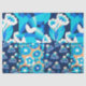 PAPIER MOUSSELINE FLEURS BLANCHES HAWAII BLEU BOLD FLORAL PATCHWORK