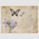 Faites preuve de créativité avec ce papier de tissu de découpage d'inspiration vintage. Le design se compose de fleurs violettes, papillon, écriture et tourbillons décoratifs. L'ajout parfait à votre projet de découpage ou de média mixte!