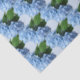 Papier de tissu floral bleu. Fleurs d'hydrangée bleu clair, avec feuilles verts, motif. Parfait pour l'emballage cadeau d'anniversaire ou de mariage.