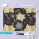 Belles fleurs dessinées à la main de gris doré et de papillons blancs et blancs sur un arrière - plan noir.