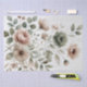 Papier de soie floral moderne aquarelle olive poussiéreuse et rose