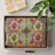 Un motif abstrait au coeur foncé plein d'arbres et de quatre fleurs rouges. Ajoutez votre nom ou un mot.