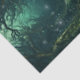Un sentier lumineux rempli d'éclairs mène dans une forêt turquoise et verte.