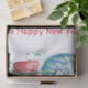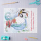 Peinture originale couleur pastel en bleu blanc, bonhomme de neige et pingouin jouant du violon dans la neige hivernale avec des fleurs rouges, fleurit.par Bulgan Lumini (c)