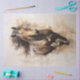 Une aquarelle peinte d'un cheval brun galopant capture la beauté et la force majestueuses de ce bel animal.